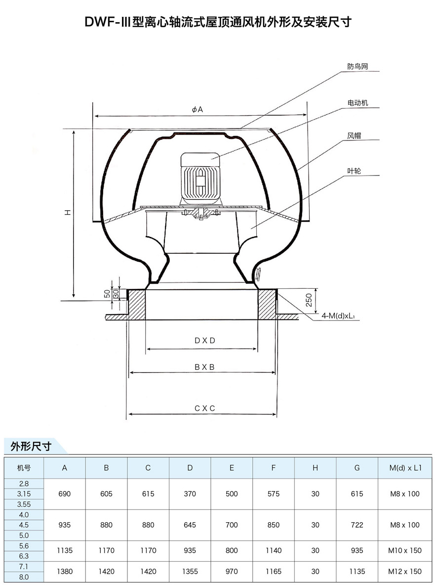 DWF- III型離心軸流式屋頂風(fēng)機(jī)