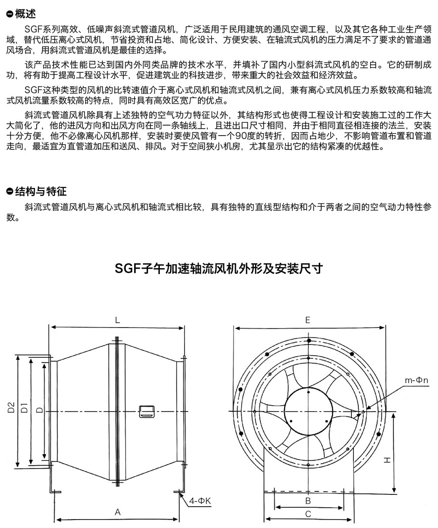 SGF系列高效、低噪聲斜流式管道風(fēng)機(jī),廣泛適用于民用建筑的通風(fēng)空調(diào)工程,以及其它各種工業(yè)生產(chǎn)領(lǐng)域, 替代低壓離心式風(fēng)機(jī),節(jié)省投資和占地、簡化設(shè)計(jì)、方便安裝、在軸流式風(fēng)機(jī)的壓力滿足不了要求的管道通 風(fēng)場合,用斜流式管道風(fēng)機(jī)是最佳的選擇。